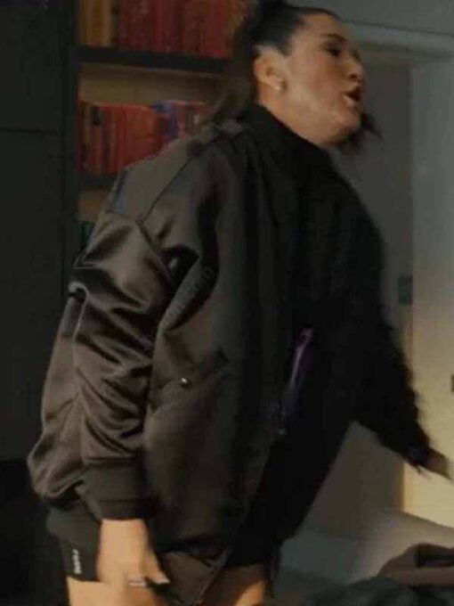 The motivation behind this Minka, this Your Place, or Mine Zoe Chao Oversized Bomber Jacket is Zoe Chao, an astounding actress who depicts a supporting character in the series, she set the right kind of fashion inspiration with this article. The great combination of style, confidence, and sophistication. She is known as an independent woman who knows what she wants. While wearing this jacket, she captured many eyes. It allows you to wear whether running errands, meeting friends, or heading out on a date, this outerwear will empower you.