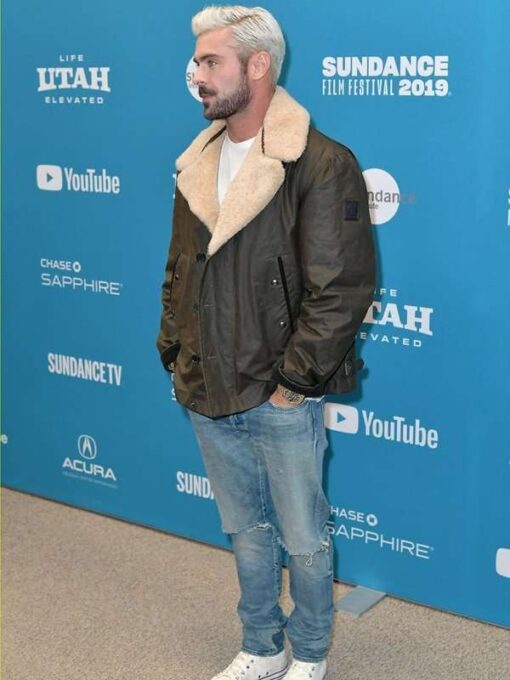 Shockingly Evil and Vile Event Zac Efron Brown Shearling Collar Jacket